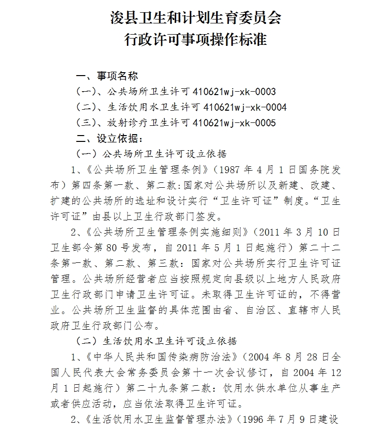 浚县卫生和计划生育委员会行政许可事项操作标准