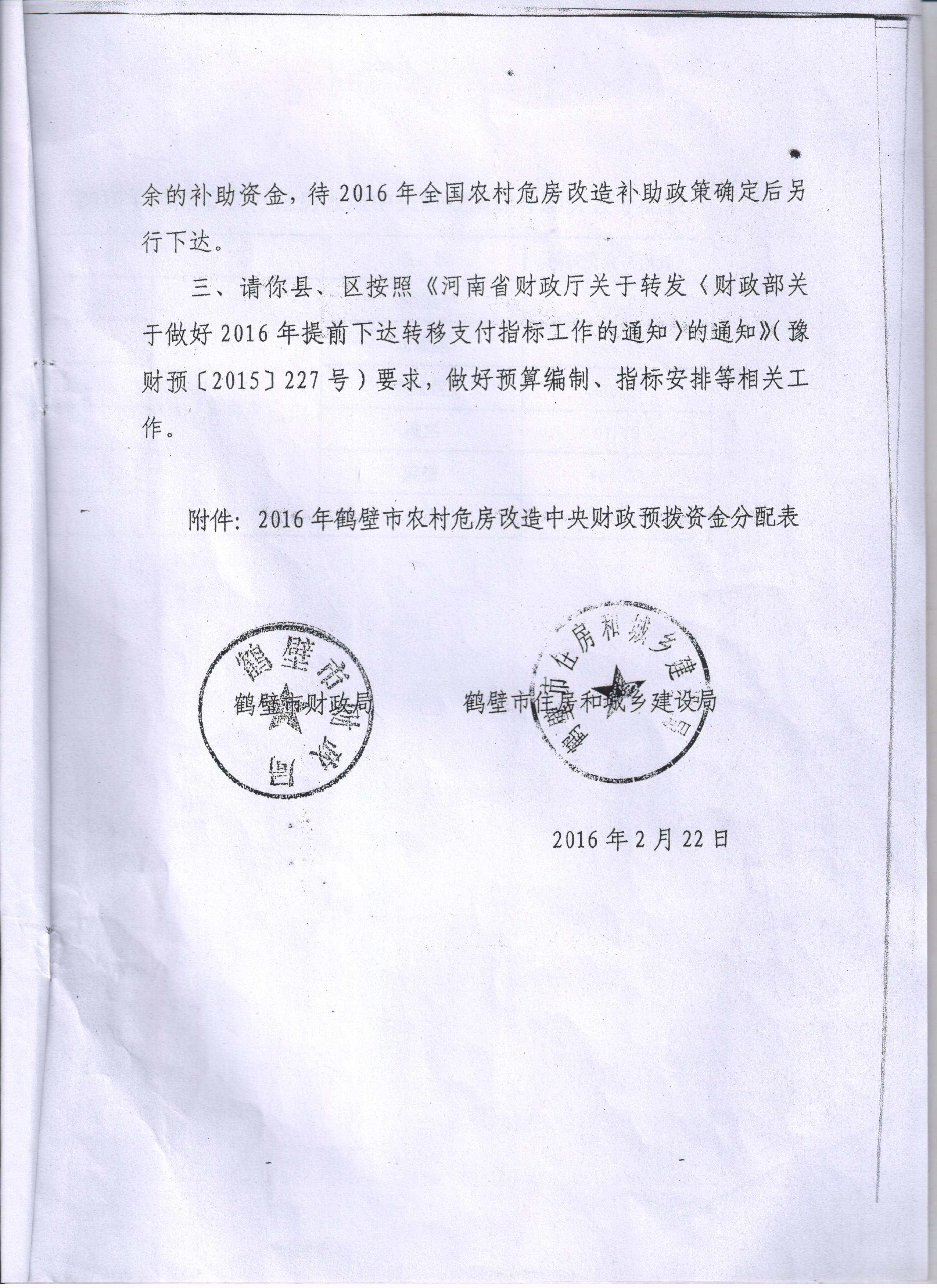 关于提前下达2016年农村危房改造中央补助预算指标的通知